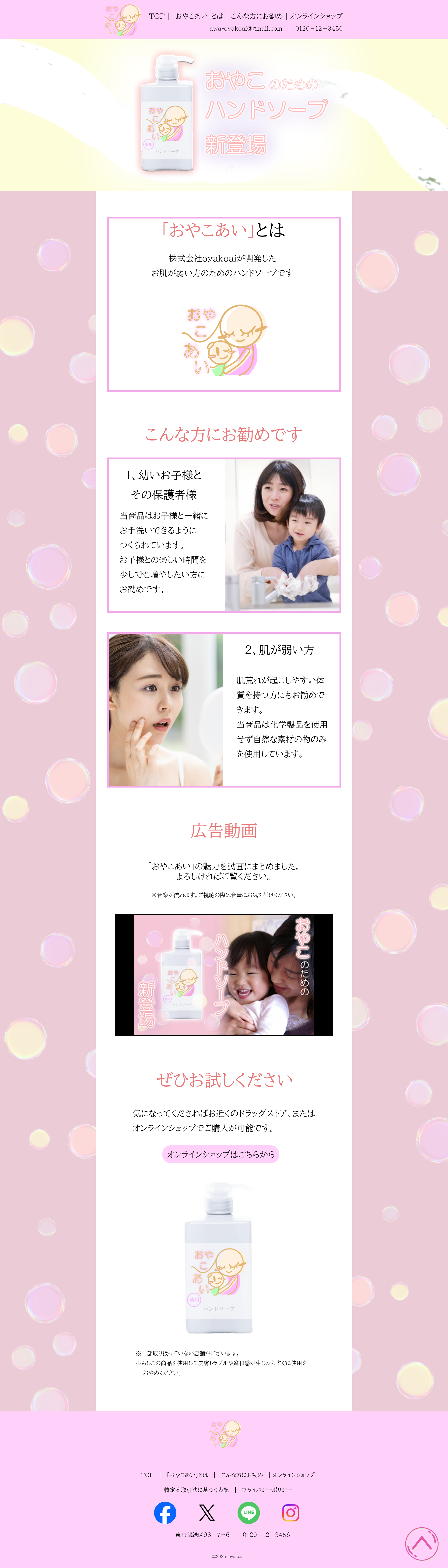 ターゲット:小さなお子様をもつ保護者、肌が弱い方(主に20代前半~40代 前半の女性)